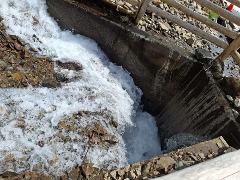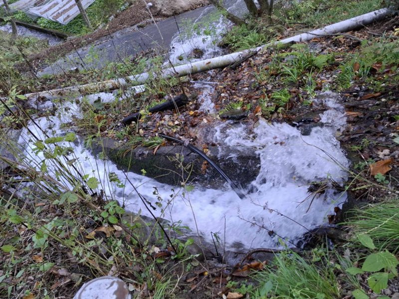 流入口が土砂で詰まり大量の水が流出