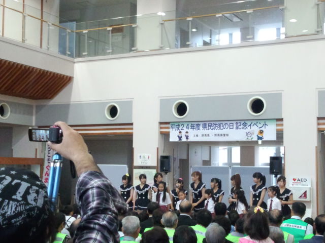 イベント | 県政 県民防犯の日記念イベント AKGも参加 2012-06-17 by 金井康夫事務所 利根沼田県民局で行われました、県民防災の日記念イベントに参加してきました。 イベントでは、保育園児による感謝のことばと歌のプレゼントが贈られました。 かわいいですね。 また、AKGによる防犯ショーも行われました。 歌と踊りに魅せられました。 防犯記念の日といっても、あまりかたくならず、こうしたソフトな内容で自主防犯意識を高めよう、という趣旨だと思います。 犯罪の起こりにくい、安心安全な利根沼田のまちづくりを市民の皆さんと目指していきたいですね。 (金井康夫事務所より)