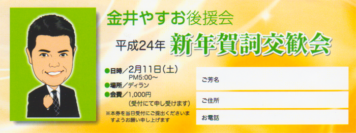 金井康夫後援会からのお知らせでございます。